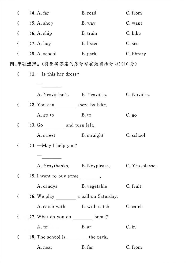 首页 > 全部 > 英语 > 四年级上英语期末检测卷《冀教版》
